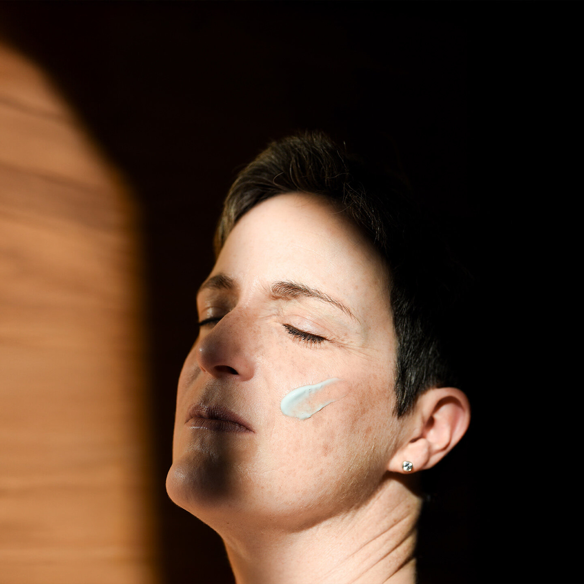 Deine Routine startest du mit dem SunProtect Sensitive. Trage eine großzügige Menge Sonnencreme auf dein Gesicht auf und achte darauf, auch den Hals und die Ohren einzubeziehen. Diese Creme schützt nicht nur vor UV-Strahlen, sondern bietet auch Schutz vor IR-A und Bluelight, was besonders wichtig ist, wenn du viel Zeit vor Bildschirmen verbringst. Der SunProtect Sensitive hinterlässt ein angenehmes Hautgefühl und bereitet deine Haut optimal auf die nachfolgenden Schritte vor.